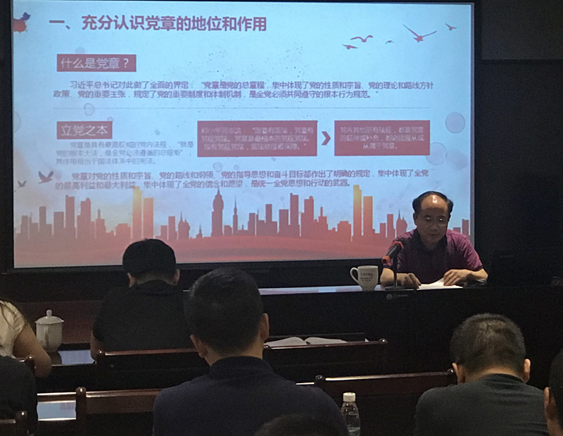 黨總支書記、總裁劉健同志在《學(xué)習(xí)尊崇黨章,爭做合格黨員》的黨課中,從黨章的地位、作用、歷程等方面向黨員全面解讀了中國共產(chǎn)黨章程,從黨章規(guī)定的黨員義務(wù)、習(xí)總書記系列重要論述及“四講四有”等角度闡述了合格黨員的標(biāo)準(zhǔn)。他希望公司黨員自覺以黨章、習(xí)總書記講話精神和“四講四有”為標(biāo)尺,隨時(shí)糾正個(gè)人的思想和行為,保持思想品德的純潔,保持工作作風(fēng)的優(yōu)良,保持工作績效的先進(jìn),保持個(gè)人行為的廉潔,主動(dòng)融入公司的發(fā)展大計(jì),盡職盡責(zé)做好本職工作。
